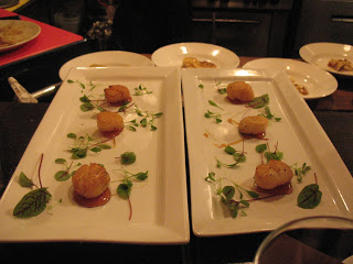 The Bauer Kitchen’s first dish was a spring greens salad highlighted most memorably by warm goat cheese medallions and spicy-sweet maple candied pecans. The salad was one of my favorites, and, were I given a jar of the pecans, they would be gone in short order. Great, zippy vinaigrette, and one of the prettiest dishes, plating-wise.