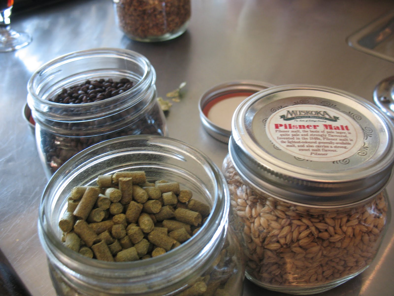 (The other two jars hold the malts for the Dark Ale and Craft Pilsner, respectively.)