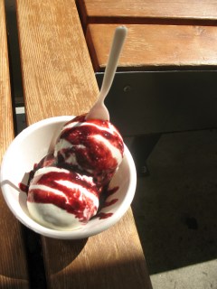 weet corn with berries ice cream. Though sweet corn was a flavour I chose for its quirky factor, bypassing salted caramel, which would normally be my YES PLEASE, NOW? choice, it was a worthy experiment. (And the blackberry sauce was perfect.) The texture of the ice cream, which the shop notes is less ‘icy’ than most ice creams as ice crystals don’t have a chance to form in the flash-curing from the liquid nitrogen, is very smooth, allowing the delicate flavour of the sweet corn to shine through. Unusual, but yummy.