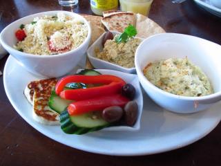 Wonderful as the wine was, we couldn’t drink it all the time! On our second day, M and I found ourselves at the Tall Poppy Cafe in Wellington for lunch. We loved it, and were I gifted with Carmen Sandiego’s skill at purloining landmarks, I would leave the Golden Gate Bridge and steal the Tall Poppy instead! The people were friendly, the space was welcoming no matter one’s age (people aged six to sixty sat around us, enjoying the fresh soups, sandwiches, and in my case, awesome Mediterranean platters of couscous, grilled halloumi cheese, hummus and pita, warm artichoke dip, and lots of fresh veggies and olives! I was starving, and still walked away with a takeaway container for later.)