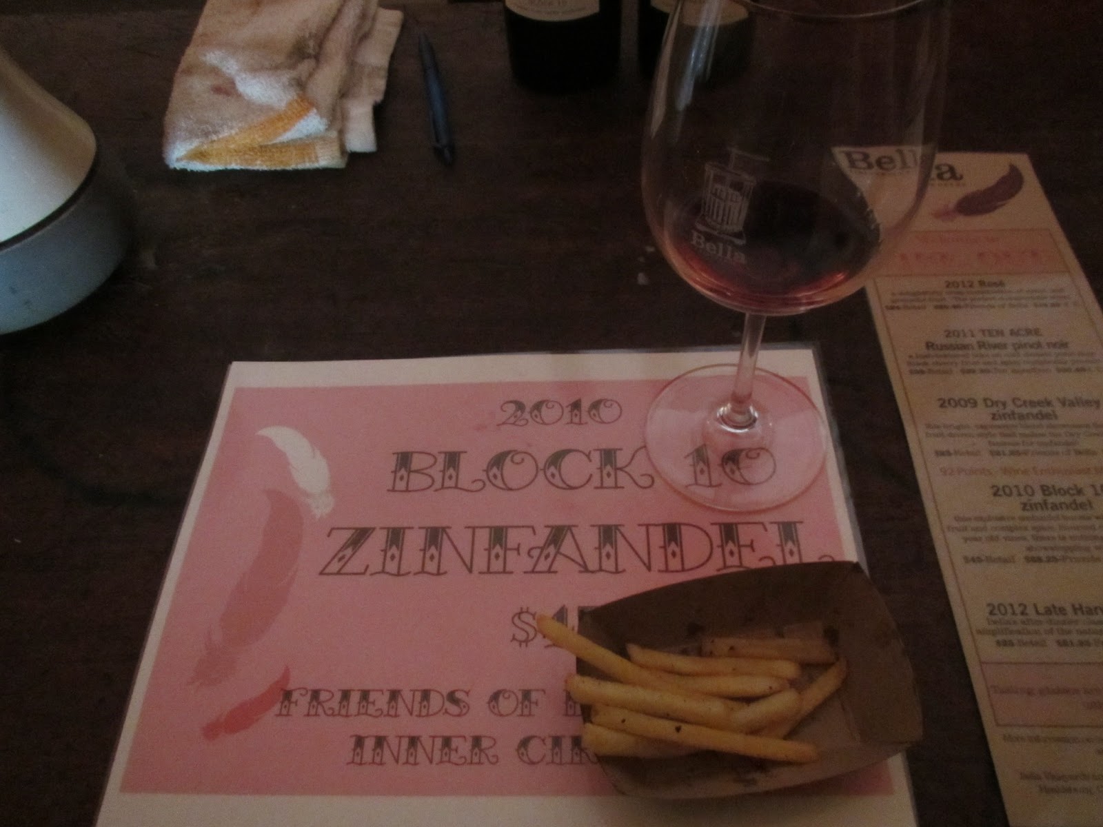 Our next two tastings were Zinfandels that the sommelier nicknamed Tuesday Evening and Friday Night, and while I smiled at the nicknames initially, they fit. The first of the two, the Dry Creek Valley Zinfandel, was Tuesday – approachable, fruit-forward, with berry notes and softer tannins. I enjoyed it, but the Friday version, Block 10 (as seen below) was a little fuller-bodied and compelling. Both were delicious introductions to the variety of Zinfandels available in California, and a great indication of the variety Bella’s winemakers (and terroir) are capable of expressing.