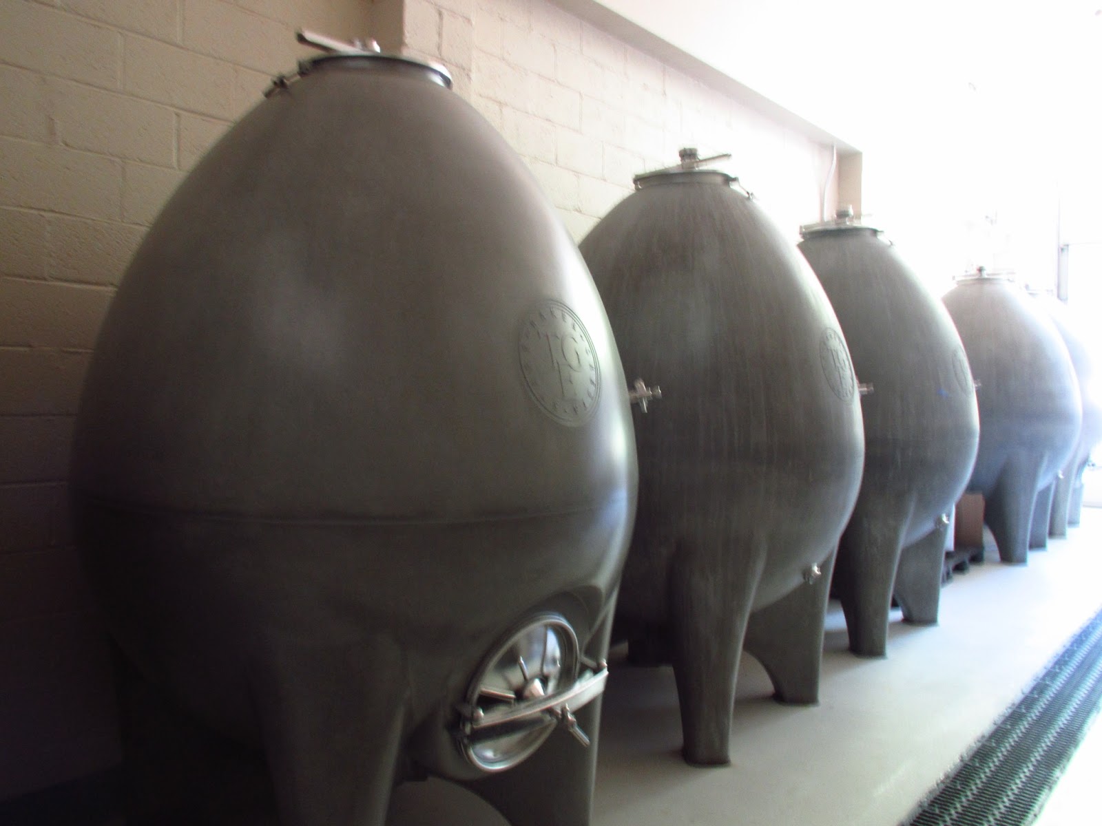 These futuristic, egg-like vessels were on the production floor at Thomas George Estates; while tasting some of their delicious Pinot Noirs, the sommelier working with us first showed us a picture and then walked M and I over to the floor to check them out in person. He shared that the casks are primarily used to age Chardonnay and Pinot Noir wines, but that the winemaker was also planning to experiment with other varietals.